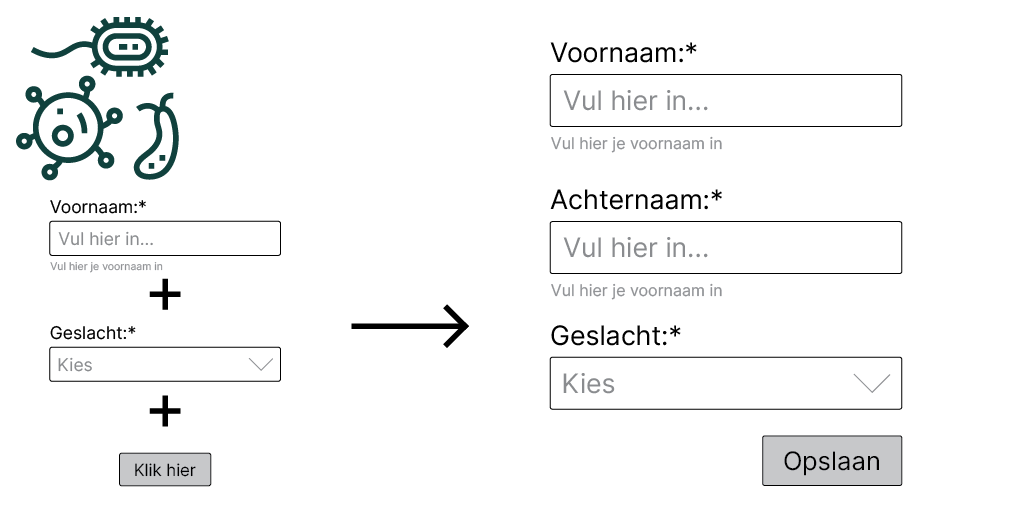 In interfaces is een molecuul een relatief simpele groep van UI elementen (atomen) die samen eenzelfde doel willen vervullen. Door deze elementen (atomen) later te ‘verbinden’, waarborg je het ‘single responsibility principe’. Waardoor je zorgt dat elk atoom één zo specifiek mogelijke taak heeft, en die goed vervuld.