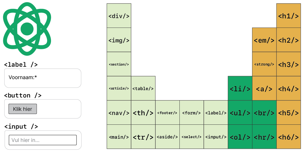In de scheikunde zijn atomen de bouwstenen van alle materie, dan geldt in Atomic Design dat atomen de bouwstenen zijn waaruit alle gebruikersinterfaces bestaan. Neem bijvoorbeeld labels, inputs, buttons, paragraven, headers en alle andere elementen die niet verder opgesplitst kunnen worden zonder dat de functionaliteit verdwijnt.